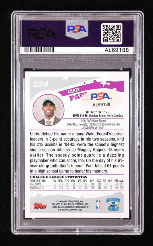 Chris Paul Autographed 2005 Topps Rookie Card with PSA Authentication