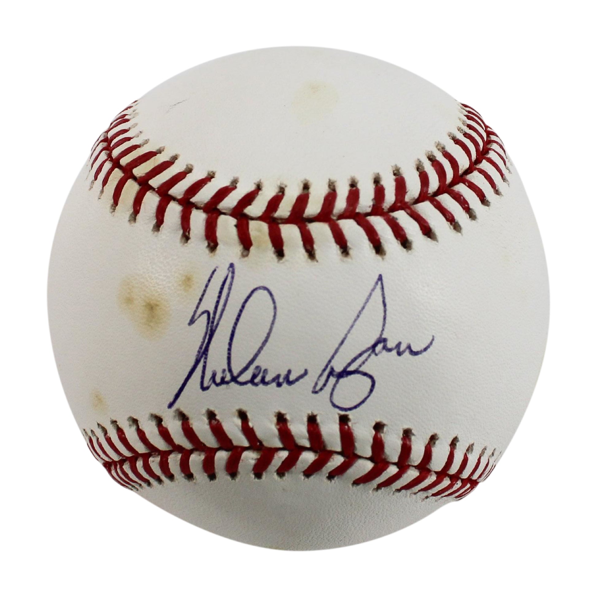 This autographed baseball has been personally hand-signed by PLAYER of the TEAM. This autograph is certified by James Spence Authentication (JSA) and PSA/DNA. It comes with the numbered holograms as well as Ryan's authentication hologram. Please see all photos regarding the condition of this baseball. There is obvious staining on the ball.